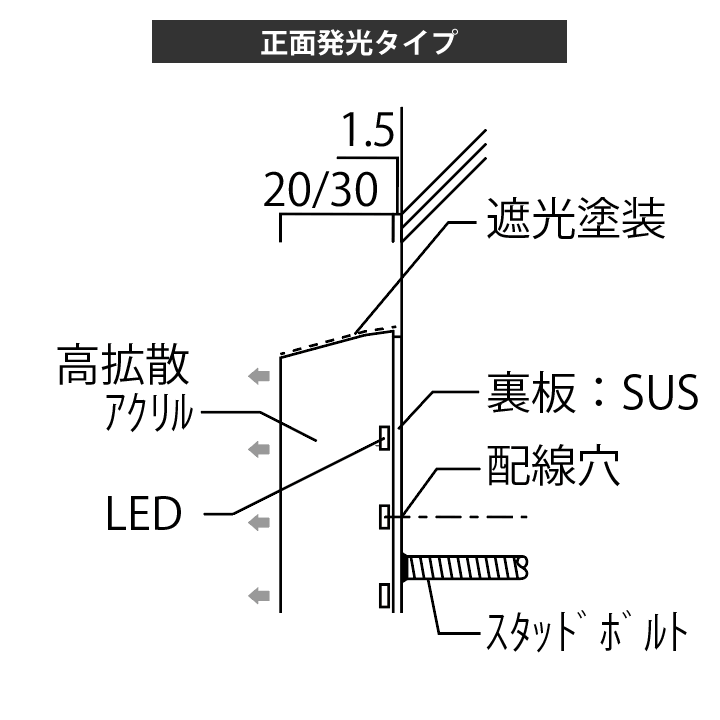 発光文字看板【屋外用】 正面・裏板側面発光タイプ