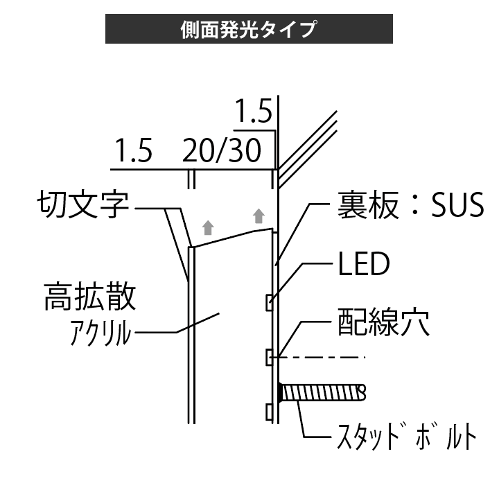 発光文字看板【屋外用】 側面発光タイプ