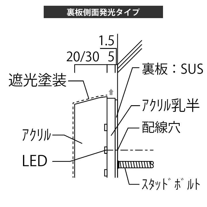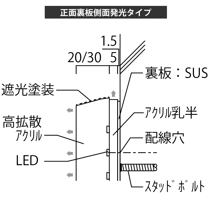 発光文字看板【屋外用】 裏板側面発光タイプ